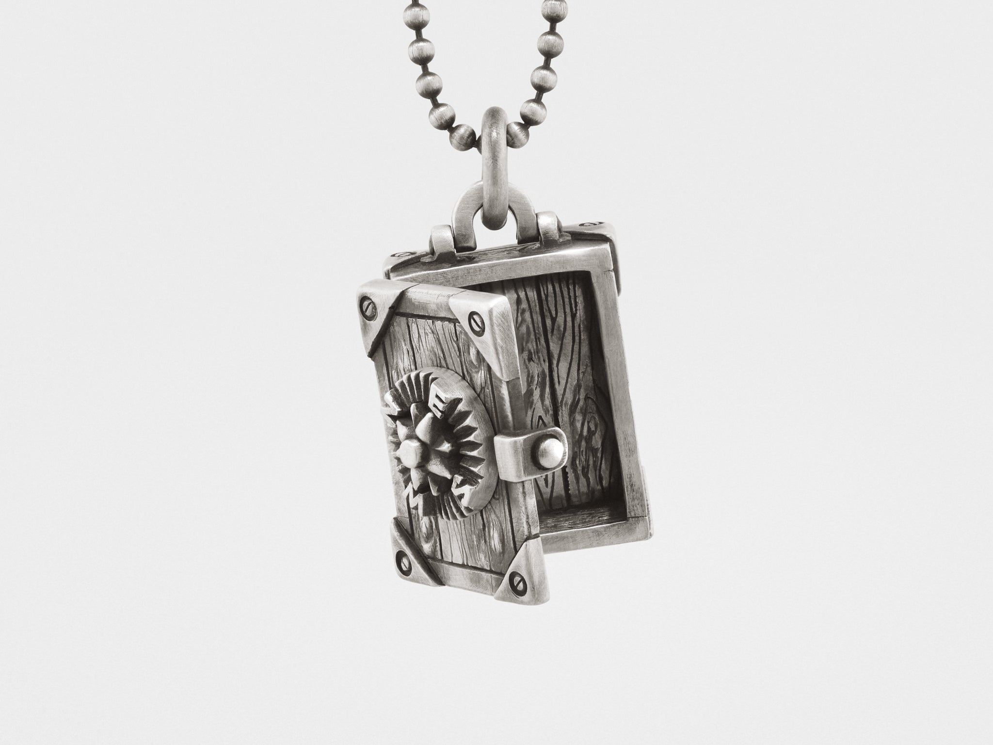 Medallón de cofre del tesoro colgante en plata