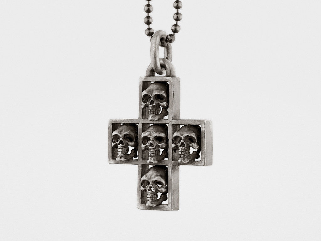 Esta original versión de un símbolo atemporal le da un toque rockero a tu look. El collar está acabado a mano en plata de ley oxidada para un look vintage y artesanal, con una sensación de lujo y un peso agradable. Cada pieza tiene un patrón de pátina único y viene con una cadena de bolas de plata de ley.